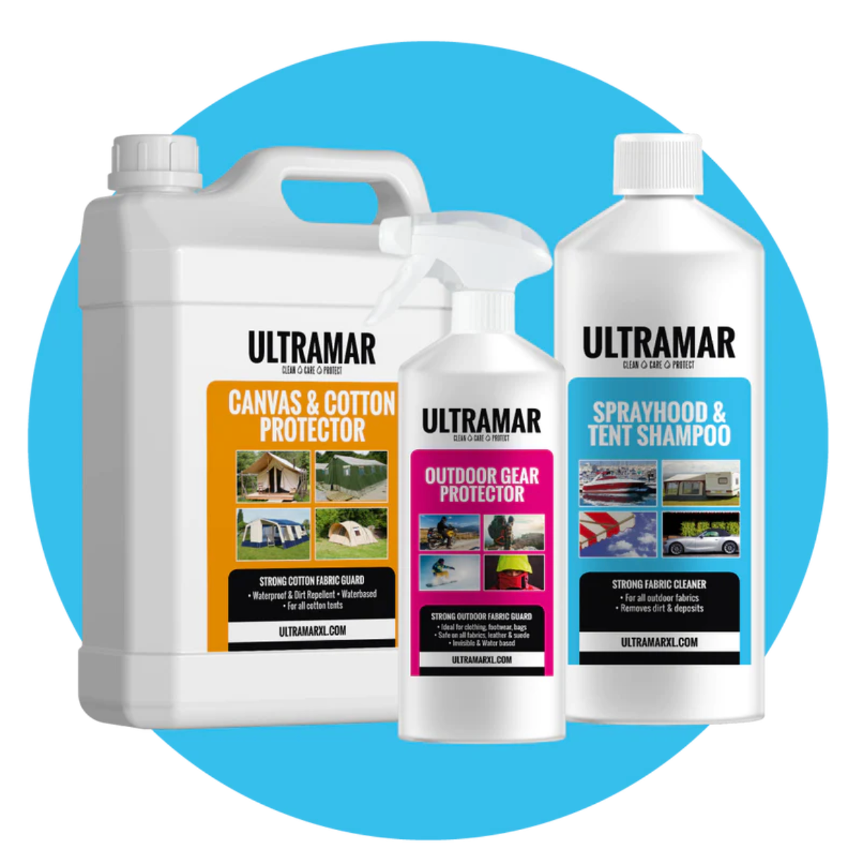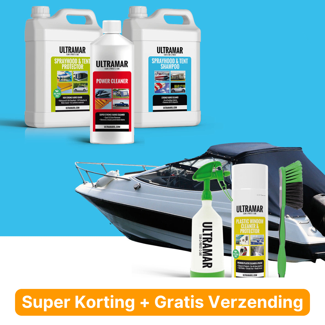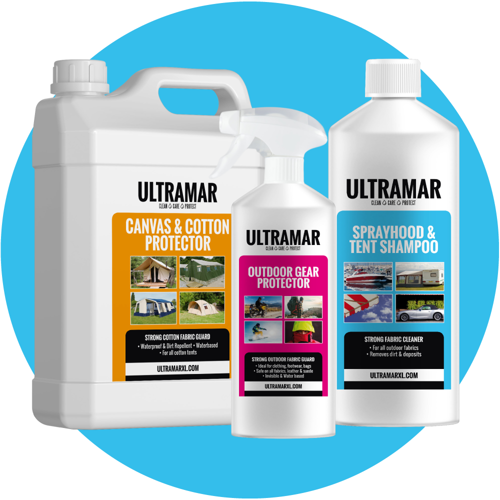 Premium onderhoudsproducten voor alle soorten doek. Met Ultramar reinigt en beschermt u uw bootkap, tent, cabriodak en outdoor-spullen. Het resultaat? Perfect waterdicht doek dat langer schoon blijft en langer meegaat. Gegarandeerd resultaat met Ultramar!